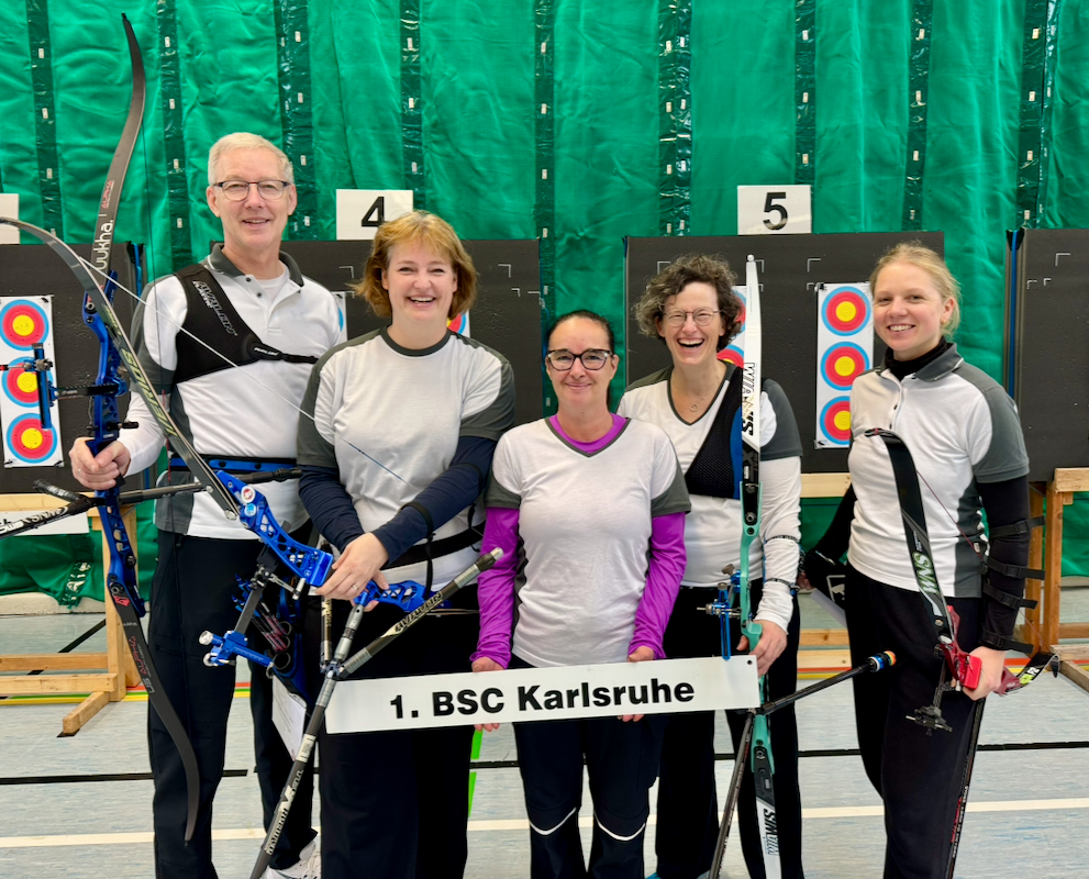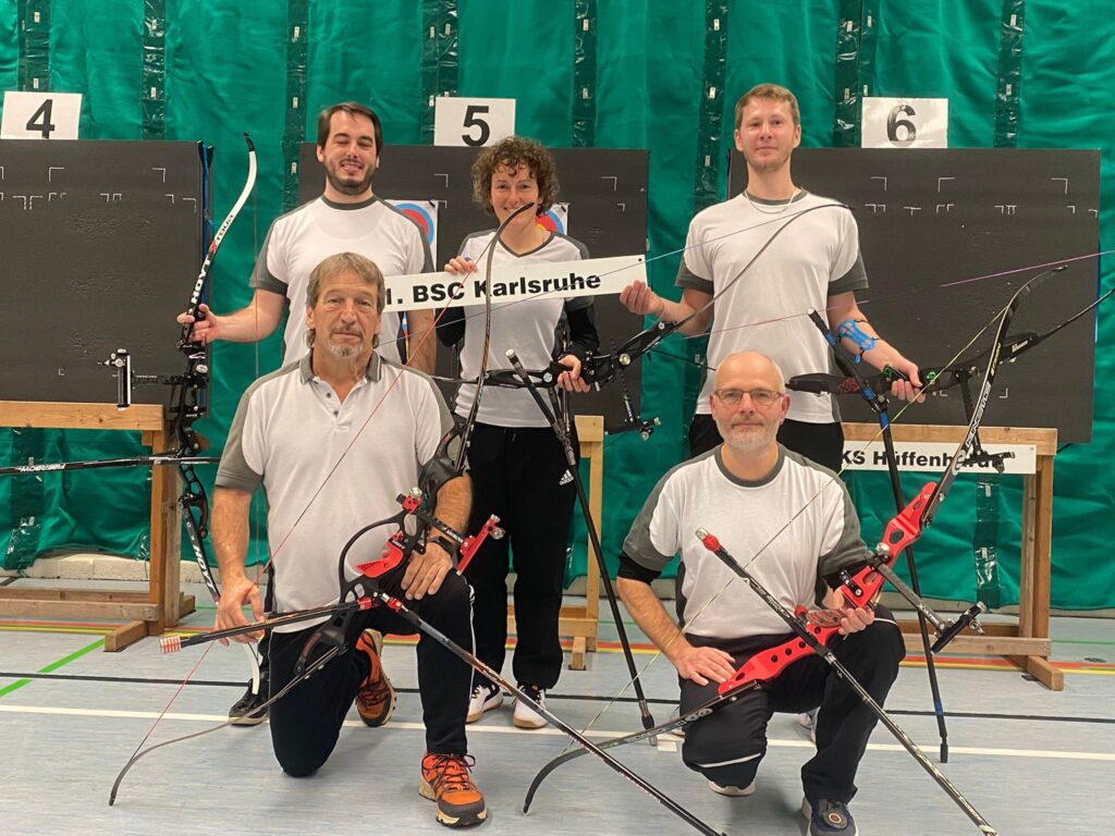 Unserer Landesliga-Mannschaft tritt in dieser Saison ebenfalls in einer neuen Zusammensetzung an: Katrin Kuhne und Roland Ax, die beide letzte Saison schon geschossen hatten und Ulrike Rittinger, die aus der Badenliga kam, wurden durch drei „Liga-Neulinge“ verstärkt: Sarah Kirstein, Lisa Reich und Tanja Herrmann geben in diesem Jahr ihr Debüt als Ligaschützinnen. Da in der Landesliga nur 4 Mannschaften antreten werden an jedem Wettkampftag jeweils zwei Matches gegen jede andere Mannschaft geschossen. Von diesen sechs Begegnungen konnte unsere Mannschaft drei gewinnen, drei wurden leider verloren (dabei haben wir gegen jede andere Mannschaft jeweils einmal gewonnen und einmal verloren). Mit diesem Ergebnis belegt unsere Mannschaft damit aktuell Platz 2. Ein gelungener Einstieg für diese neu zusammengesetzte Mannschaft. Wie bei der Badenliga findet der nächste Wettkampf auch erst im Januar statt.